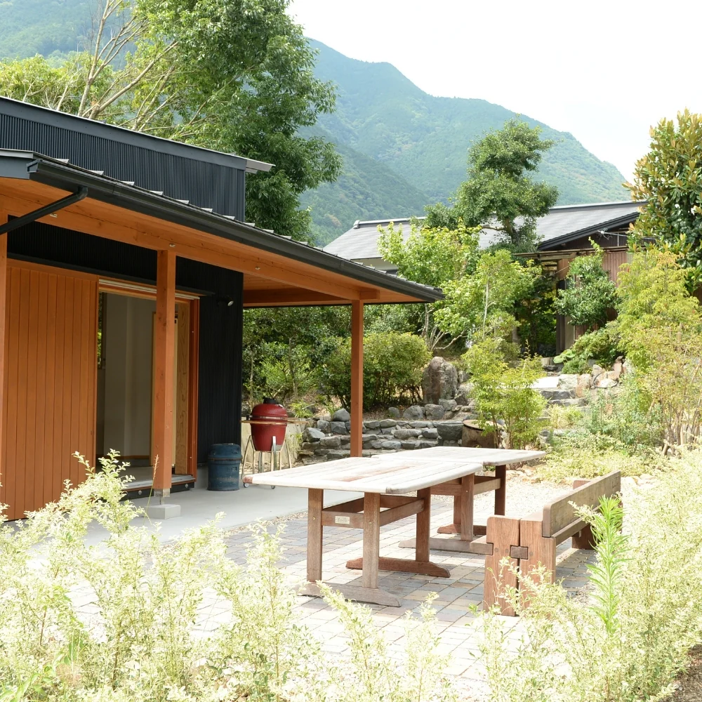 里山の癒される景色を見ながらプライベートBBQ、雨が降っても安心のフルキッチン併設