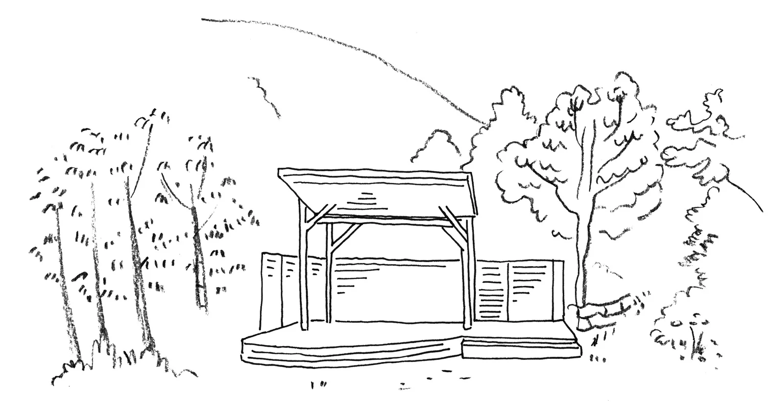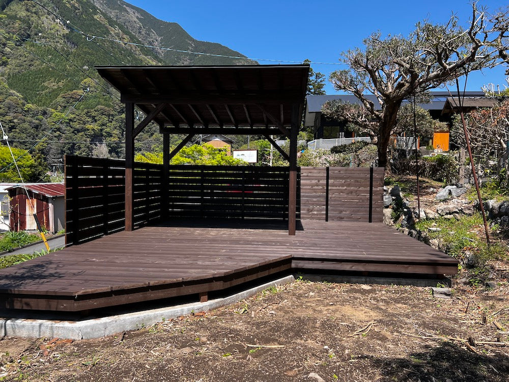 1日1組貸し切りのステージ(東屋)と大きな広場。